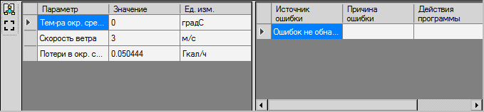 В левой части элемента контроля данных размещается вертикальная панель инструментов, содержащая кнопки управления функциями контроля данных, а так же таблица для ввода условий и представления результатов поверочного расчета объекта. В правой части элемента контроля данных размещается таблица-протокол ошибок в исходных данных, выявленных в процессе поверочного расчета исследуемого объекта.