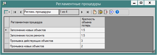 Справочник содержит информацию, на основании которой определяются потери теплоносителя и тепла в процессе выполнения регламентных процедур.