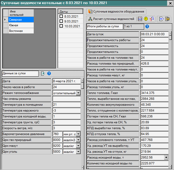 В результате описанных действий будет выполнен расчет суточных ведомостей выбранных котельных за выбранные сутки.