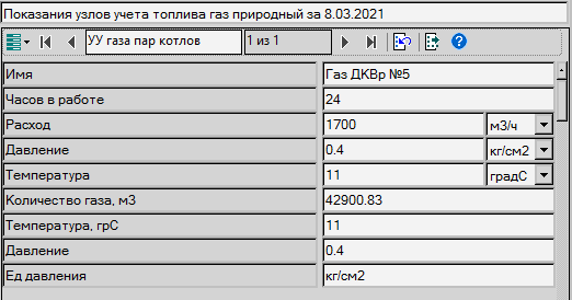 Показания узлов учета - данные измерений параметров потоков топлива, воды и пара, полученных с помощью узлов учета, установленных на котле