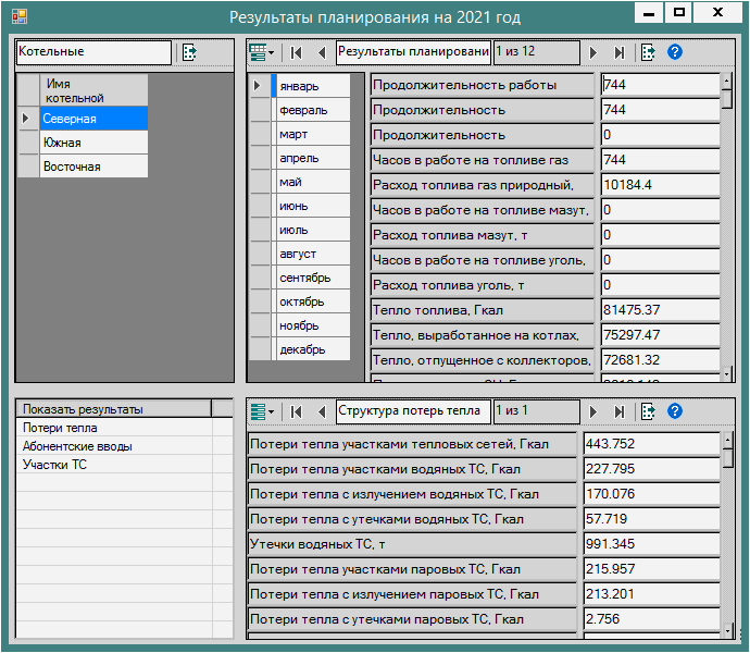 Представлению подлежат результаты расчета потерь тепла и теплоносителя на участках всех тепловых сетей текущей котельной за расчетный интервал или за весь исследуемый период