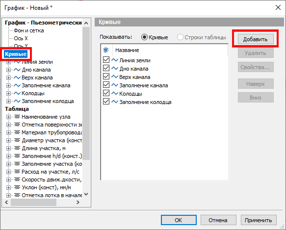 Откройте окно графика, для этого выберите пункт главного меню (канализация), либо нажмите кнопку