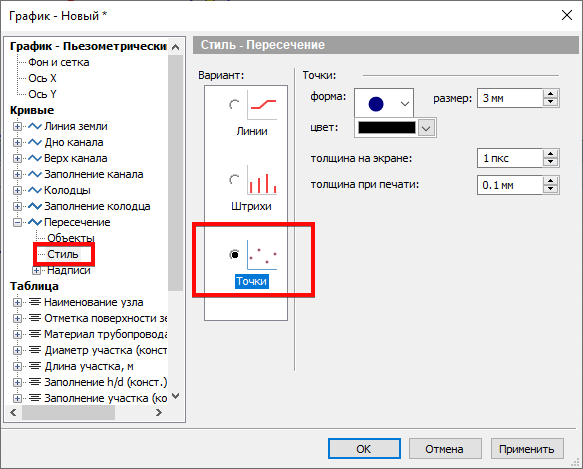 Для настройки внешнего вида объектов на графике в левой части окна выберите пункт Стиль и укажите вариант Точки.