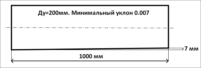 Минимальный уклон - метр/метр. Например, для диаметра 200 м рекомендованный минимальный наклон 0,007 (0,007 метра на метр = 7 миллиметров на метр).