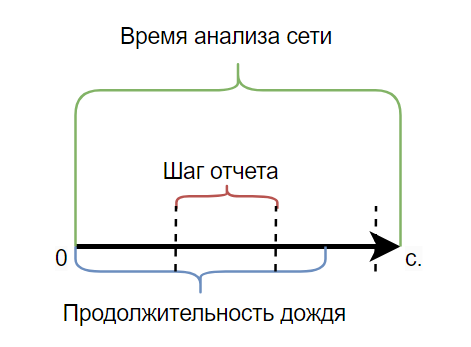 Если указать продолжительность дождя Дождь начинается с начала расчета. |