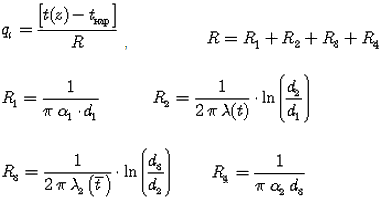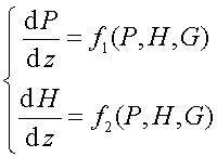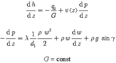 При движении теплоносителя по паропроводу его параметры (давление, температура и др.) меняются вдоль трубы. Эти изменения связаны с охлаждением теплоносителя через стенку и теплоизоляцию трубы, а также с потерей давления из-за трения. На некотором расстоянии от источника пар может стать влажным (двухфазное состояние теплоносителя) и в этом случае температура и давление не определяют однозначно состояние теплоносителя. Привлекать третий параметр влажность либо степень сухости пара не слишком удобно, более естественно выбрать в качестве динамических переменных давление и энтальпию. Эти переменные однозначно определяют состояние теплоносителя, в том числе температуру и влажность. В общем случае, уравнение, описывающее изменение давления и энтальпии вдоль трубы можно записать в виде:
