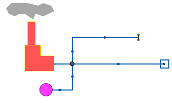 Например, потребитель − это узловой элемент, который может быть связан только с одним участком. Задвижка, насосная станция, могут быть соединены только с двумя участками, один входящий, другой выходящий из объекта. Четырехтрубная тепловая сеть после ЦТП изображается с использованием вспомогательного участка. Подробнее о правильном изображении объектов тепловой сети Элементы модели тепловой сети