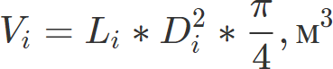 Суммируются объемы воды во всех попавших под отключение участков сети. Объем каждого участка Vi вычисляется по формуле: