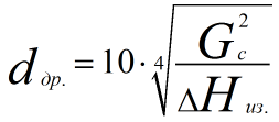 Диаметр отверстия дроссельной диафрагмы определяется по формуле: