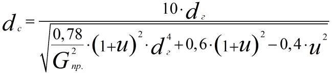 Связь диаметра сопла с диаметром горловины и коэффициентом смешения можно выразить через зависимость: