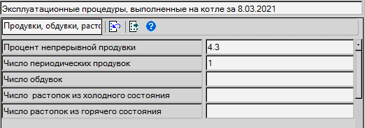 Эксплуатационные процедуры котла - данные об эксплуатационных процедурах, выполненных на котле в течение суток, в том числе сведения о продувках, обдувках и растопках котла