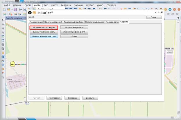 Построение газопровода идет при помощи открытых карт сети интернет и длины участков автоматически записываются в реальном масштабе.