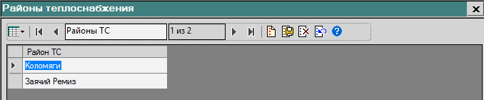 Для редактирования и просмотра перечня районов теплоснабжения следует щелкнуть левой кнопкой мышки на узле Районы теплоснабжения в дереве задач главной формы приложения