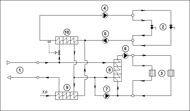 ЦТП является объектом системы теплоснабжения, связывающим распределительные (квартальные) сети II контура с элементами магистральной тепловой сети I контура. На рисунке представлена принципиальная схема ЦТП, предназначенного для подключения четырехтрубной квартальной тепловой сети (II контур) к магистральной тепловой сети (I контур).