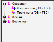 Узлы котельных в иерархической структуре маркируются пиктограммой , а узлы магистральных зон - пиктограммой . Щелчок левой кнопкой мышки на узле иерархической структуры, делает соответствующий объект системы теплоснабжения активным, а наименование активного объекта СТС отображается в поле над элементом паспортизации ЦТП.