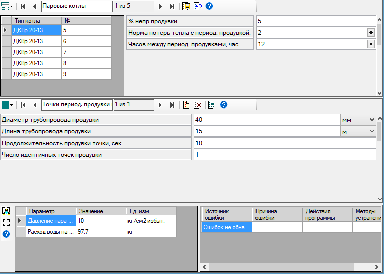 В нижней части формы размещен элемент, предназначенный для паспортизации точек периодической продувки парового котла.