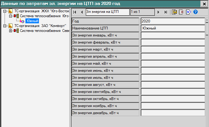 В правой части формы размещается элемент Эл энергия на ЦТП, предназначенный для просмотра и редактирования затрат электроэнергии на текущем ЦТП в течение исследуемого года базового периода.