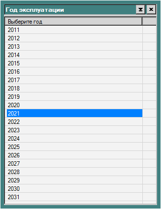 В форме Год эксплуатации следует выбрать год периода регулирования, за который предполагается вводить данные для разработки эксплуатационных температурных графиков зон теплоснабжения. Для подтверждения выбранного года периода регулирования следует нажать на кнопку