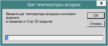 Если выбран вариант разработки эксплуатационного температурного графика с помощью программных функций приложения, то в этом случае на экране появится диалоговое окно с предложением ввести шаг между соседними температурами наружного воздуха, для которых будут вычисляться температуры сетевой воды в подающем и обратном трубопроводе тепловой сети текущей зоны теплоснабжения