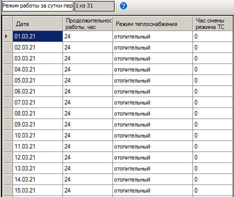 Сопутствующая процедура Режим работы за все сутки периода предназначена для просмотра и редактирования данных о продолжительности и режиме работы текущей котельной в течение каждых суток исследуемого периода.