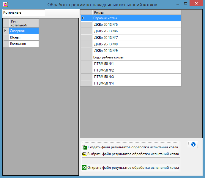 В левой части формы представлен перечень котельных предприятия, котельная на которой установлен указатель записи считается текущей.