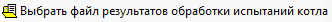 Кнопка предназначена для указания пути к файлу, заранее созданному для обработки результатов испытаний котла.