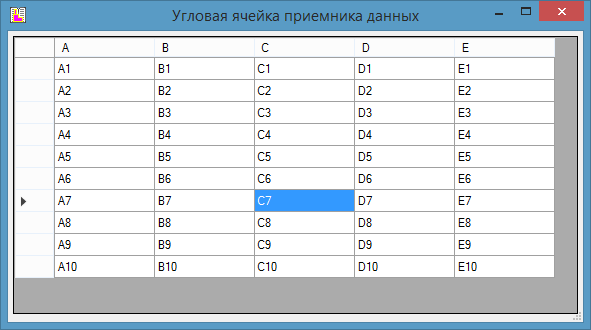 Для назначения угловой ячейки отчетного документа следует нажать на кнопку и в появившейся на экране форме щелкнуть левой кнопкой мышки на той ячейке сетки, которая станет новым адресом левой верхней ячейки на листе файла-приемника данных