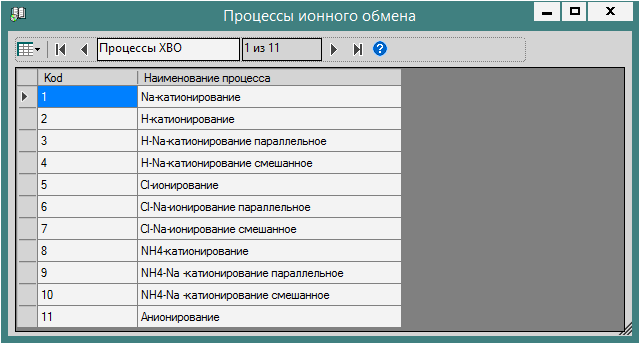 Для просмотра справочника следует щелкнуть левой кнопкой мышки на узле Процессы ионного обмена в дереве задач главной формы приложения
