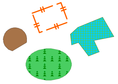 Каждый такой объект отображается в виде замкнутой ломаной линии, цвет, толщина и стиль которой могут быть заданы пользователем. По желанию внутренняя часть полигона может быть залита другим цветом и стилем. Так же можно внутреннюю часть сделать прозрачной.