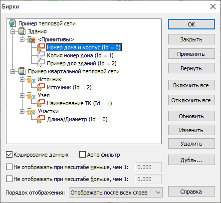 Кэширование данных - с помощью данной опции можно увеличить скорость отображения бирок, при ее установке системой создается образ надписей, и при каждом следующем отображении он используется, т.е. непосредственного обращения к базе данных не происходит. НО опцию целесообразно использовать только в том случае, если данные в базе не меняются, так как при каждом изменении данных образ будет создаваться заново.