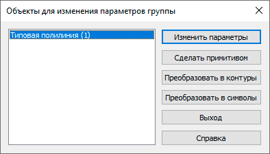 Нажмите клавишу Shift и не отпуская ее сделайте двойной щелчок по объекту. На экране появится окно Объекты для изменения параметров группы.