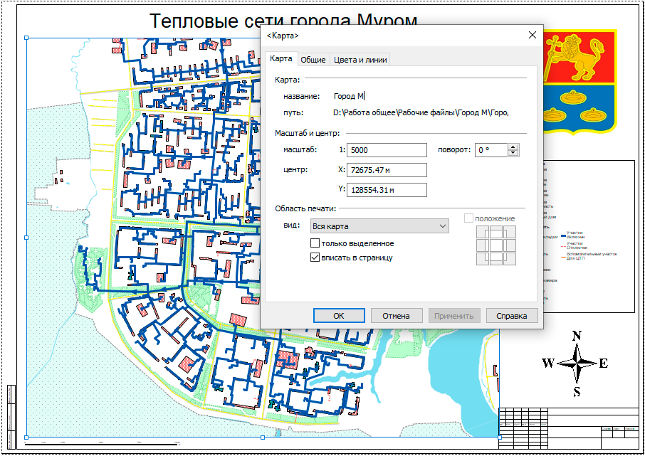 Рисунок 959. Макет с картой города на листе A1, область печати задана Вся карта с опцией вписать в страницу