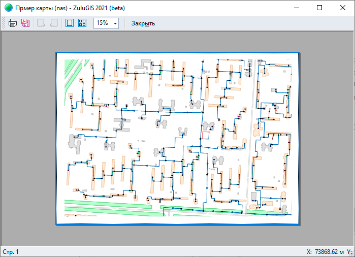 После настроек печати карты карту можно экспортировать в PDF файл, для этого: