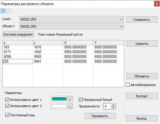 опция автообновления, то для перемещения растра по новым координатам нажмите кнопку