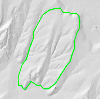 Так же для указания области может использоваться отдельный слой с уже ранее нанесенными областями. Области в слое должны быть площадными объектами (полигонами). Для использования готовой области из другого слоя нажмите клавишу и не отпуская ее сделайте щелчок левой кнопкой мыши по области слоя, область выделится.
