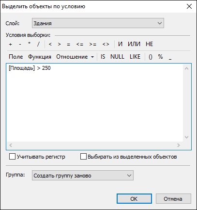 Добавить в группу – выбранные на основе запроса объекты добавляются к существующей группе (если она уже была выбрана).