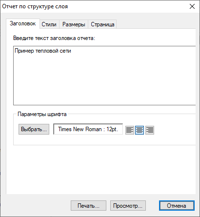 Рисунок 184. Диалоговое окно «Отчет по структуре слоя»