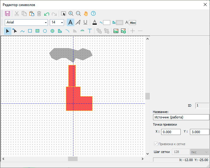 При необходимости, укажите точку привязки символа к карте (по умолчанию точка привязки 0:0). Точка привязки, это точка на изображении символа, которая соответствует физическим координатам символа на карте.