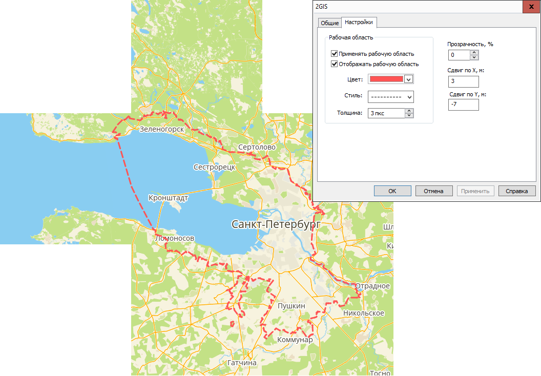 Рабочая область настраивается отдельно для каждого тайлового слоя и сохраняется в файле карты. |
