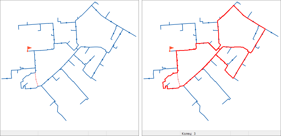 Данная функция позволяет найти кольца в сети. Кольца будут найдены для областей сети, связанных с узлами, отмеченными флагами. Для поиска колец в сети: