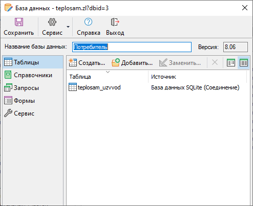 Создание и редактирование базы данных происходит в редакторе баз данных.