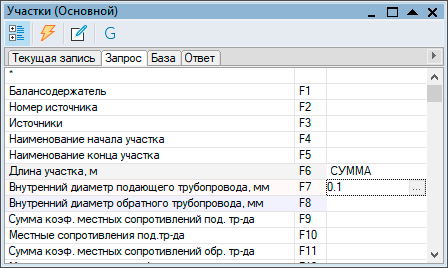 В результате будет подсчитана суммарная длинна подающих трубопроводов диаметра 0.1 метр. В том случае, если поле Внутренний диаметр подающего трубопровода, м оставить не заполненным, то будет подсчитана суммарная длинна всех подающих трубопроводов, независимо от диаметра.