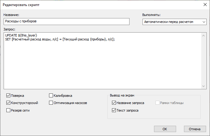 Сценарий будет автоматически запущен перед выполнением расчета, а в окне Сообщения отобразятся выполняемые запросы.