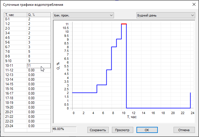 Открыть справочник по Суточным графикам водопотребления (смотрите раздел «Открытие справочника суточного графика водопотребления»).