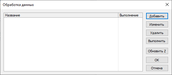В окне Обработка данных нажмите кнопку Обновить Z.