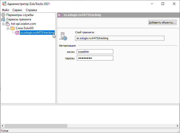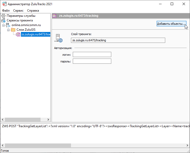 После того как слой ZuluServer связан с сервисом трекинга вы можете добавить объекты трекинга: