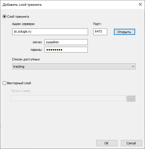 Нажмите кнопку , должен загрузиться список доступных слоев трекинга с ZuluServer.